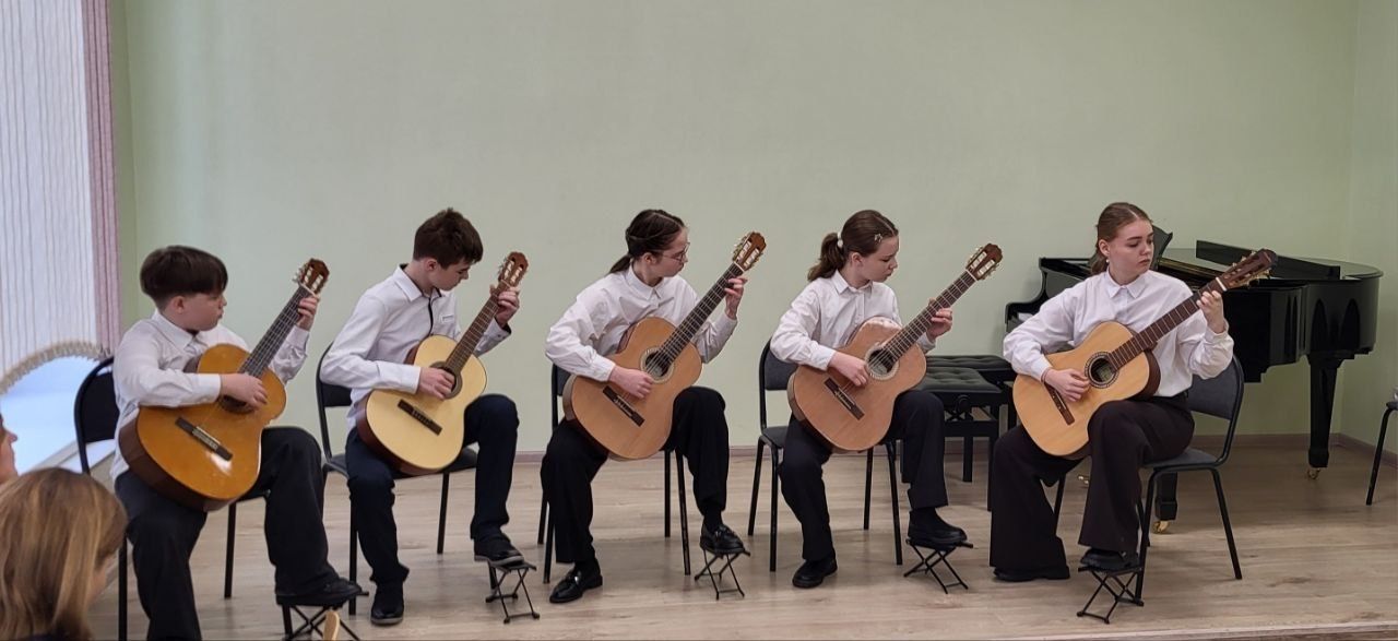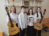 ЛАУРЕАТ 2 СТЕПЕНИ - АНСАМБЛЬ ГИТАРИСТОВ в составе Тумановой Анастасии, Фимичевой Маргариты, Бариновой Полины, Щукина Семена и Алагузова Гордея((класс преподавателя высшей категории, Заслуженного работника культуры России Елены Бойцовой).