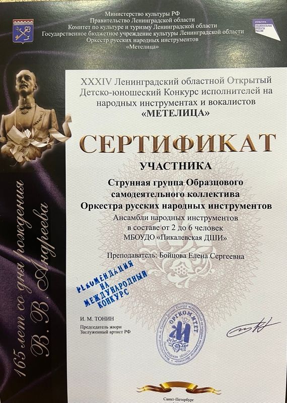 22 февраля в г. Тихвине состоялся 34 детско- юношеский конкурс Ленинградской области исполнителей на народных инструментах и вокалистов "МЕТЕЛИЦА".