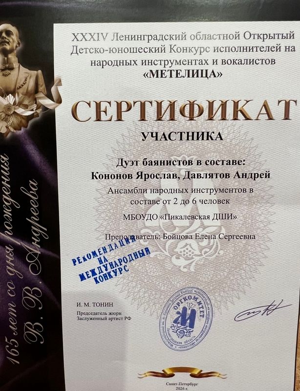 Наши дети-конкурсанты по итогам этого конкурса приглашены принять участие в Международном конкурсе "МЕТЕЛИЦА" ещё более высокого исполнительского уровня в г. Санкт-Петербурге 31 марта 2026 года.